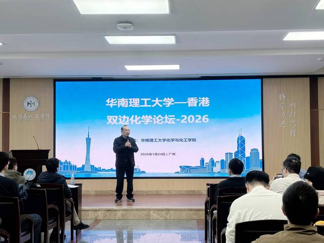 2026年1月24日,华南理工大学化学与化工学院精心承办的“华南理工大学—香港双边化学论坛”顺利召开。化学与化工学院李映伟院长在致辞中介绍了华南理工大学化学与化工学院的发展历程、进展及现状。李院长指出,粤港澳大湾区作为国家创新驱动发展的核心引擎,为化学领域的协同创新提供了广阔空间与无限可能;希望以本次论坛为重要纽带,进一步深化穗港两地高校在科研攻关、人才培养、成果转化等方面的全方位合作,携手攻克学科前沿难题,共同推动化学领域的学术进步与产业升级,为国家战略需求提供坚实支撑。