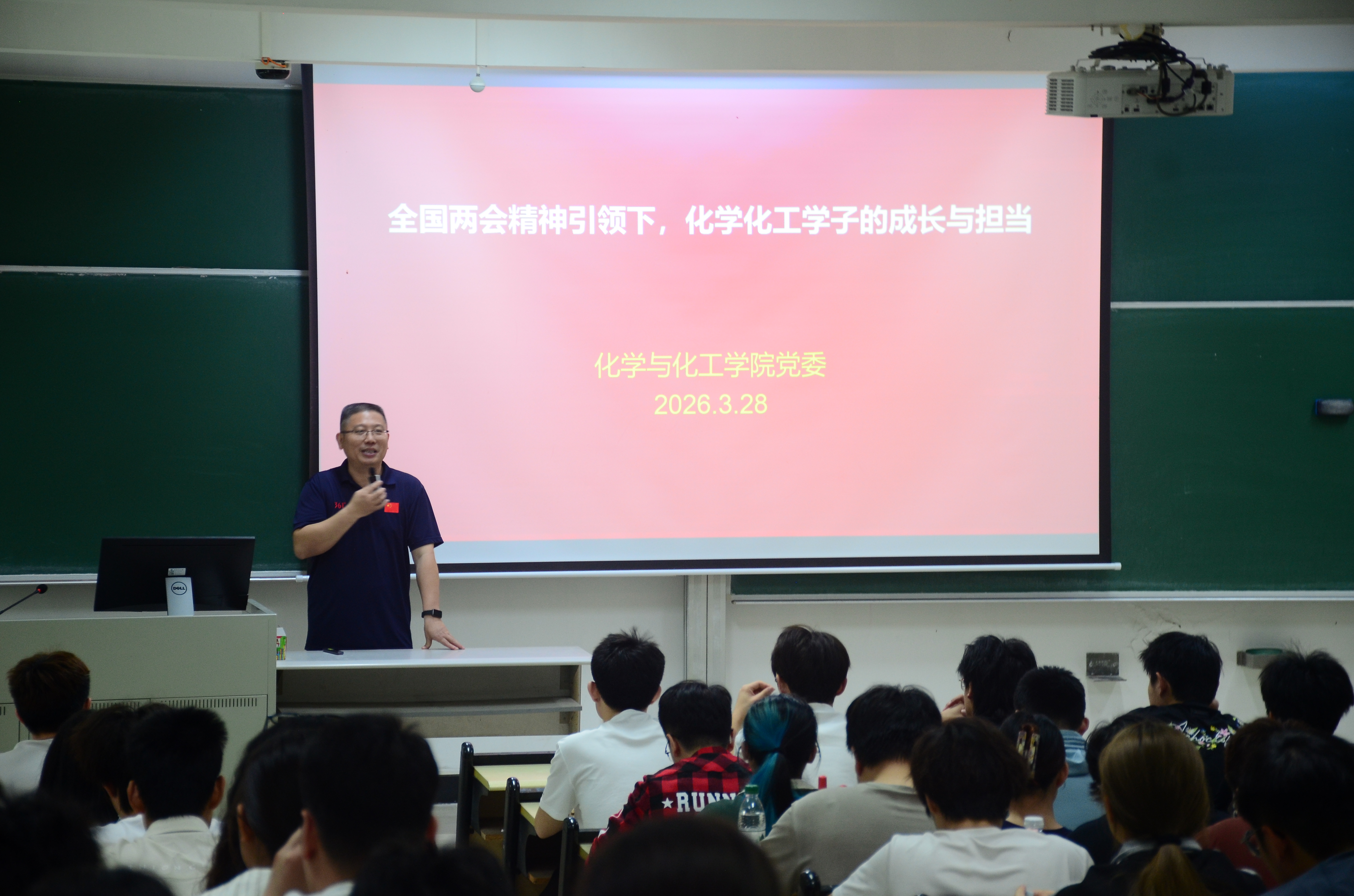 3月28日上午,黄国清书记在330204课室,面向全院100余名本科、硕士、博士学生干部开展思政第一课,课程以《两会精神引领下,化院学子的成长与担当》为主题,立足青年学子成长成才需求,结合行业发展与区域机遇,为学生干部上了一堂兼具思想性、指导性与实践性的思政课程,现场由学院党委副书记、纪委书记刘才刚主持,辅导员代表参与学习。