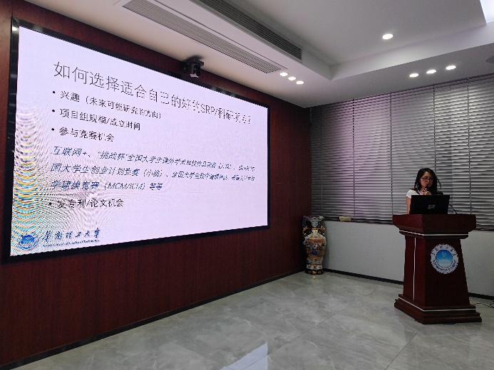 后续考研、保研经验交流分享会中第一位分享的是材料学院高分子材料与工程专业的王子璇,她获得中国科学院大学等多个名校保研录取机会,最终保研复旦大学。她本科在读期间申请多项发明专利,多次获得国家奖学金、校级奖学金等。王子璇从如何做好科研、如何选择适合自己的科研方向、从科研项目中学到什么、科研中的小方法等方面向大家分享了自己的科研经验。她强调在科研过程中要养成良好的习惯、多向师兄师姐提问、学会利用PPT记录有效信息。此外,她还向大家介绍了保研经验,提醒大家要关注高校的公众号留意夏令营信息,在参加线下夏令营时要有取舍避免时间冲突,学习中要注意自己的学科绩点排名、提升自己的科研能力、提高自己的英语水平,在面试前要准备好专业知识的问答及英文问答。