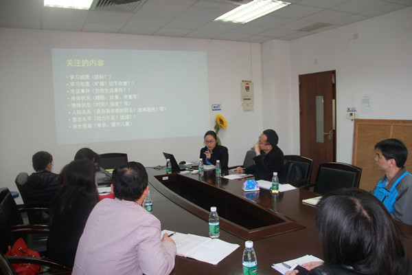 第二部分由学校心理健康教育与咨询中心刘妍君老师做班主任专项技能培训:如何对重点关注学生开展工作。刘妍君从重点关注学生的分类、从哪些方面进行关注、如何评估学生问题的严重性等方面进行了讲解和分享,并与在场的老师就具体案例进行探讨。