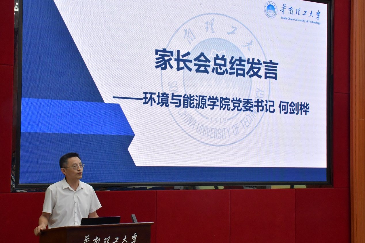 学院党委书记何剑桦在总结发言中表示,希望家长能引导同学们与祖国同奋进、共成长,将自身理想与祖国发展建设相结合,将来为国家“双碳”事业贡献青春力量。同时,他也希望老师和家长共同努力,携手帮助新生们开启人生征程的新篇章。