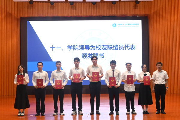 学院领导宣读了2025届本科优秀毕业设计(论文)以及2025届硕士、博士研究生优秀学位论文的表彰决定,并为其颁发证书。学院党委书记朱能武为校友联络员代表颁发聘书,期待他们能够成为校友与学院之间的桥梁,为母校发展和校友事业贡献智慧与力量。