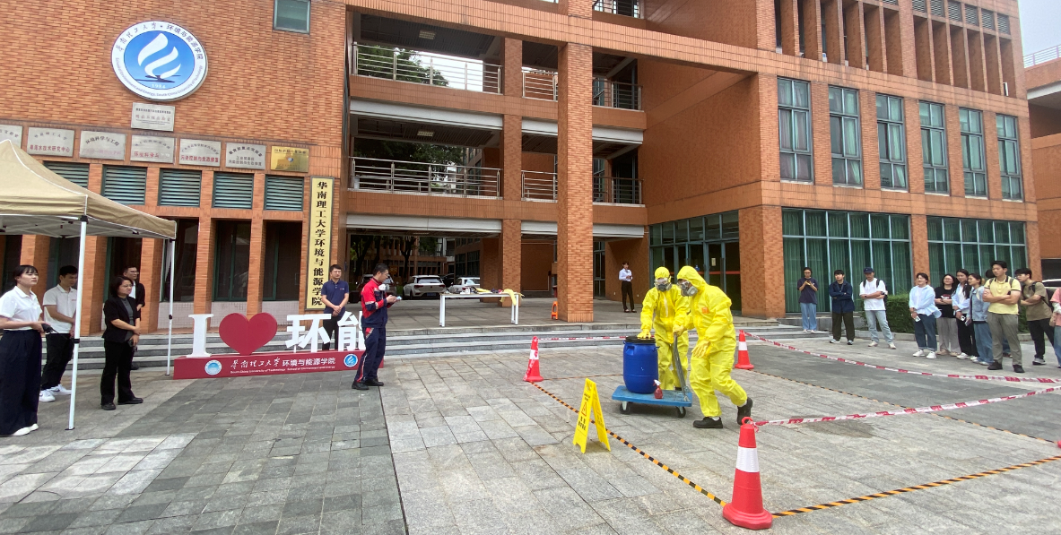 理论培训结束后,活动现场还组织了危险废弃物泄漏应急处置实操演练,切实提升了师生在实战中的应急处理能力。