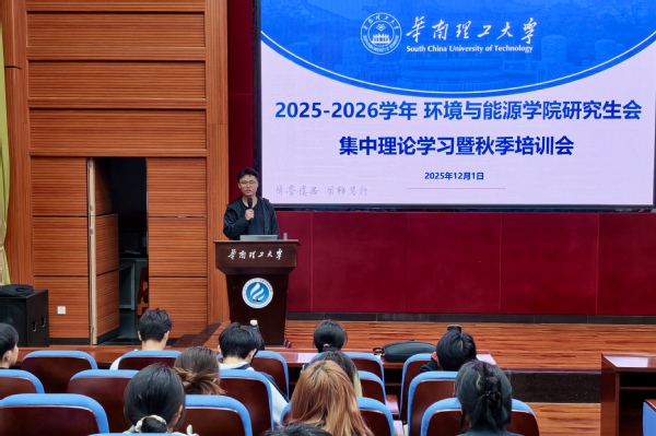 2025年12月1日,华南理工大学环境与能源学院研究生会2025年秋季培训会于B4-215顺利召开。会议聚焦理论学习和业务培训,深入学习了党的二十届四中全会精神及习近平总书记在广东考察时的重要讲话精神,并结合部门职能与工作实际进行经验交流与方法研讨。本次培训进一步增强了团队凝聚力,强化了队伍的思想基础与业务能力。环境与能源学院研究生会将继续秉持服务宗旨,为学院发展积极贡献力量。