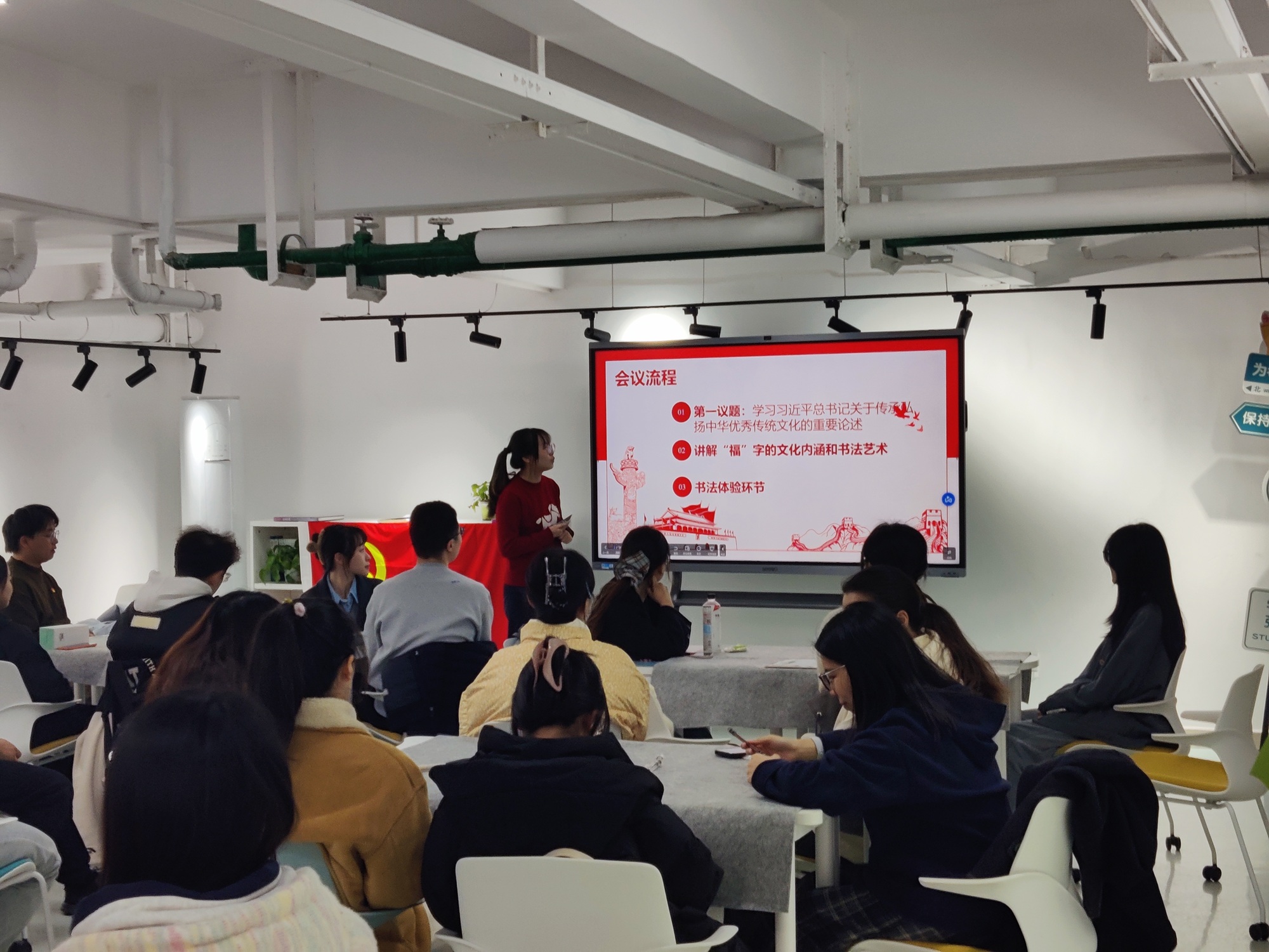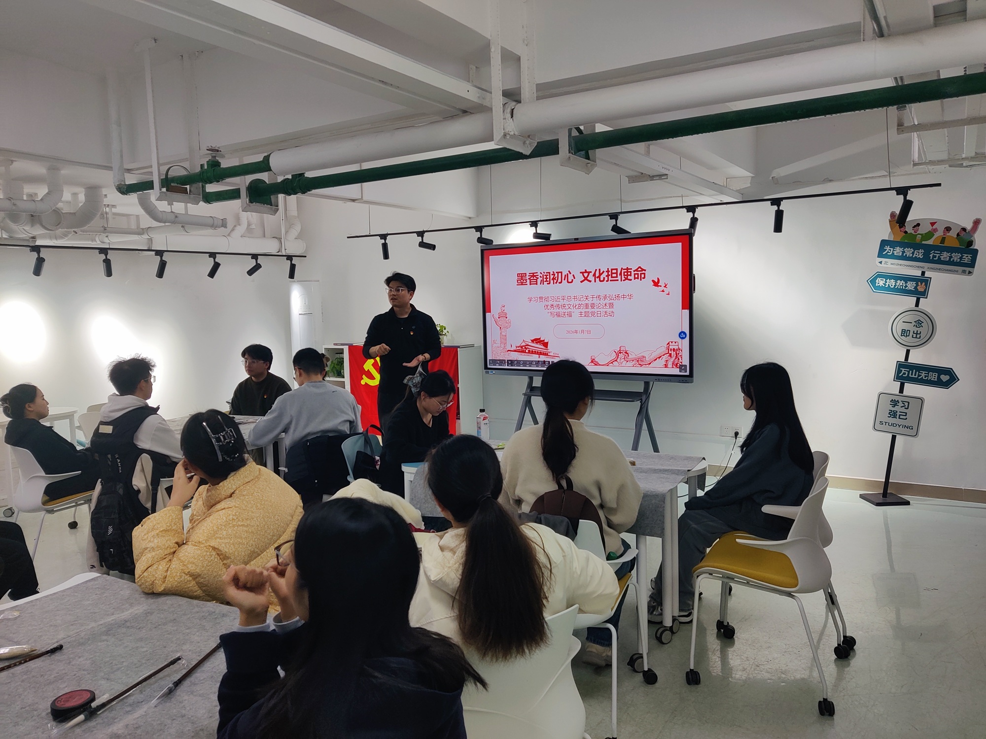 为深入学习贯彻习近平总书记关于传承弘扬中华优秀传统文化的重要指示精神,丰富党组织生活内涵,提升党员文化素养,2026年1月7日晚,由环境与能源学院土壤所研究生第一、第二党支部与峻德书院本科生第二党支部联合举办的“墨香润初心,文化担使命”书法主题研习活动,在大学城校区尚学馆-知源空间顺利开展。本次活动以传统书法为载体,通过理论导学与书写“福”字实践相结合,引导党员在翰墨芬芳中涵养文化自信,砥砺使命担当。