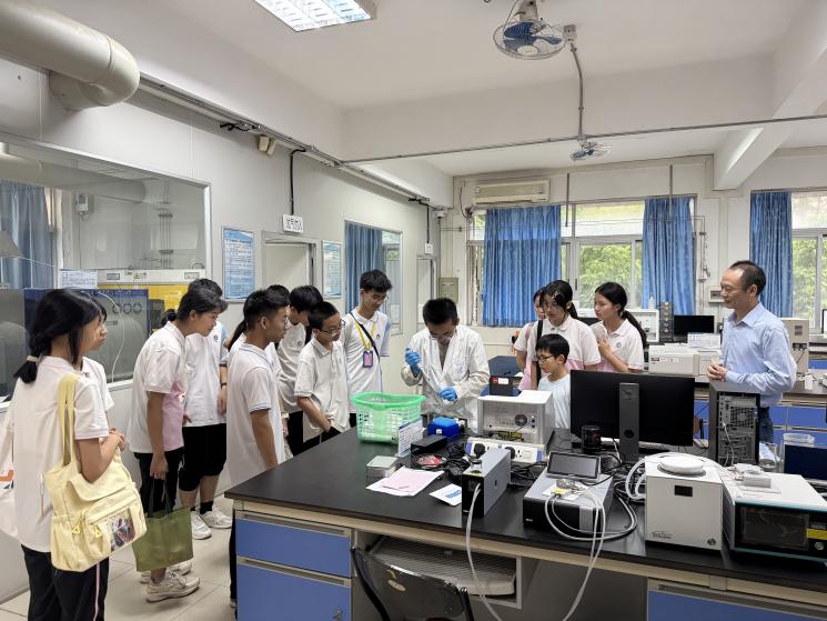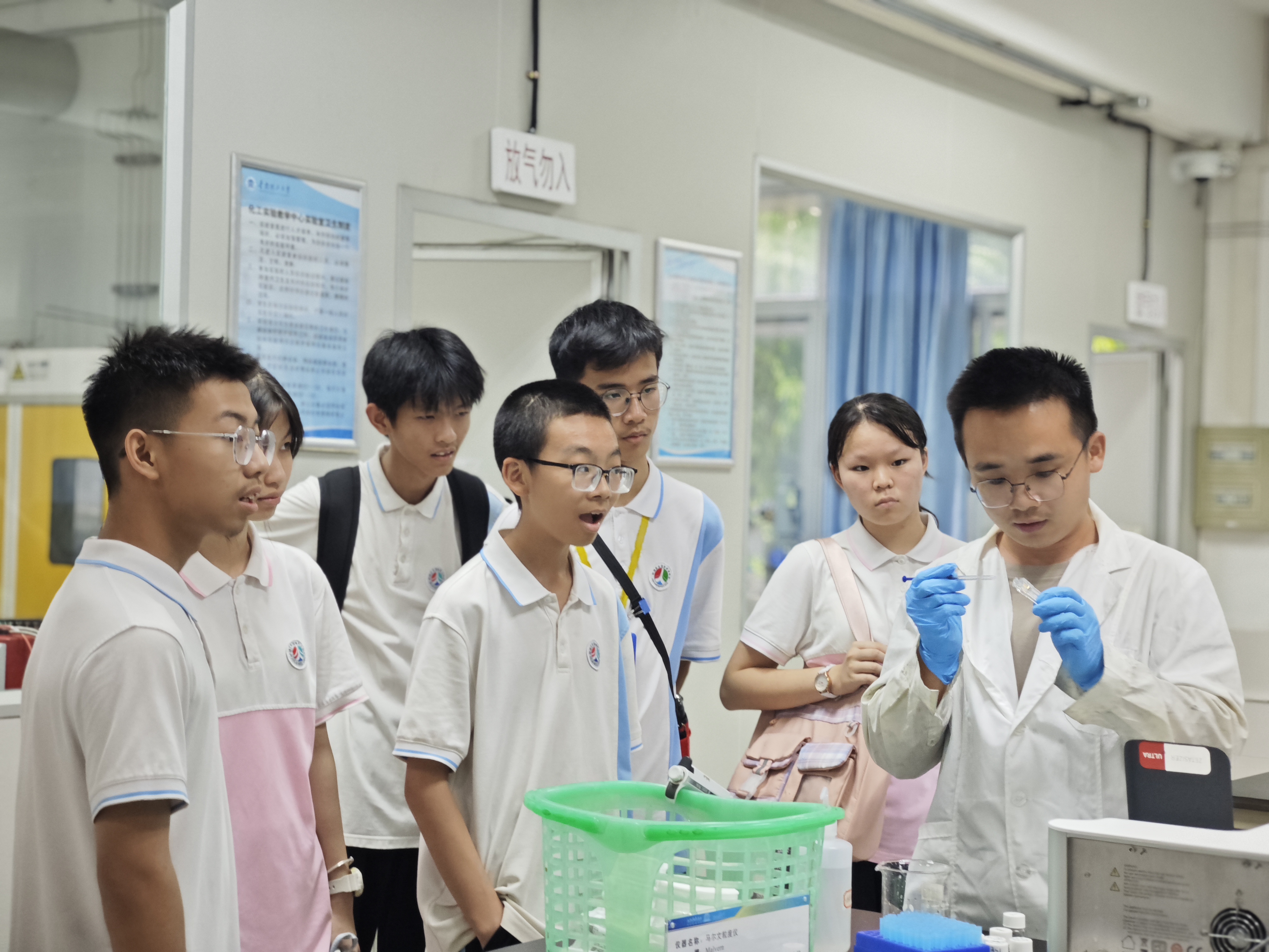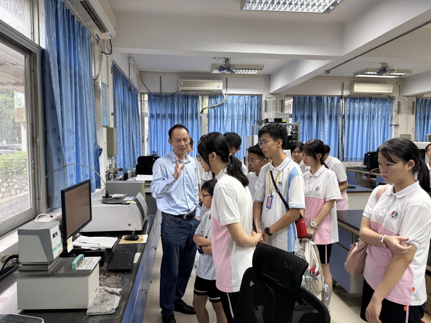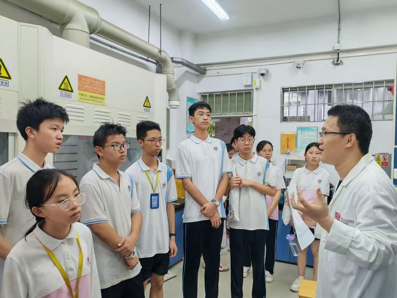5月23日下午,君兰中学德育处副主任曾亚、初三班主任钟小娟老师带领 50 名初三学生来到课题组开展研学活动。 绿色催化与能源中心负责人李雪辉教授带领学生们参观系列实验室,让同学们了解科研环境,感受学术氛围。期间,李雪辉教授与博士后牟文涛、梁晋榕及博士研究生余妍还仔细为学生们讲解了许多仪器设备的操作使用、实验室的前沿科研项目以及在相关领域的工业化应用等,结合实际应用讲解,帮助同学们深刻理解化工学科的实践价值。 本次活动为君兰中学的学生提供了良好的学习平台,帮助同学们提升科学素养,拓宽知识视野。未来,绿色催化与能源中心将继续携手为培养中学人才贡献力量。