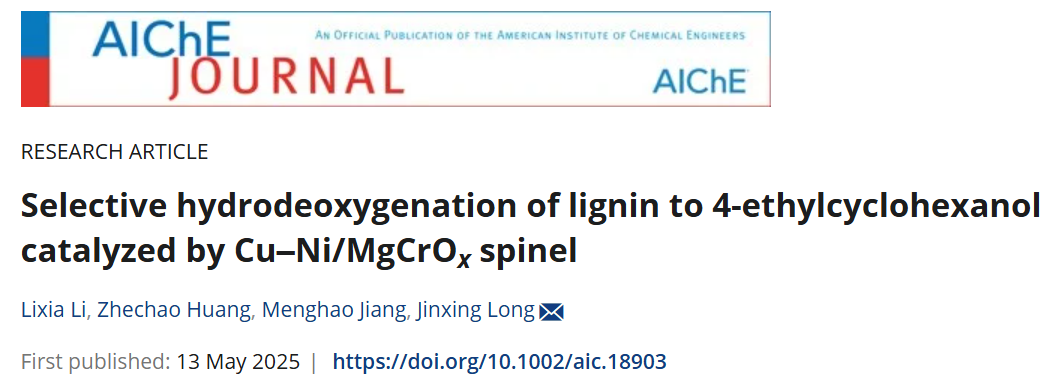 | 课题组李立霞博士关于选择性氢解木质素制备4-乙基环己醇的研究成果发表在AIChE Journal |