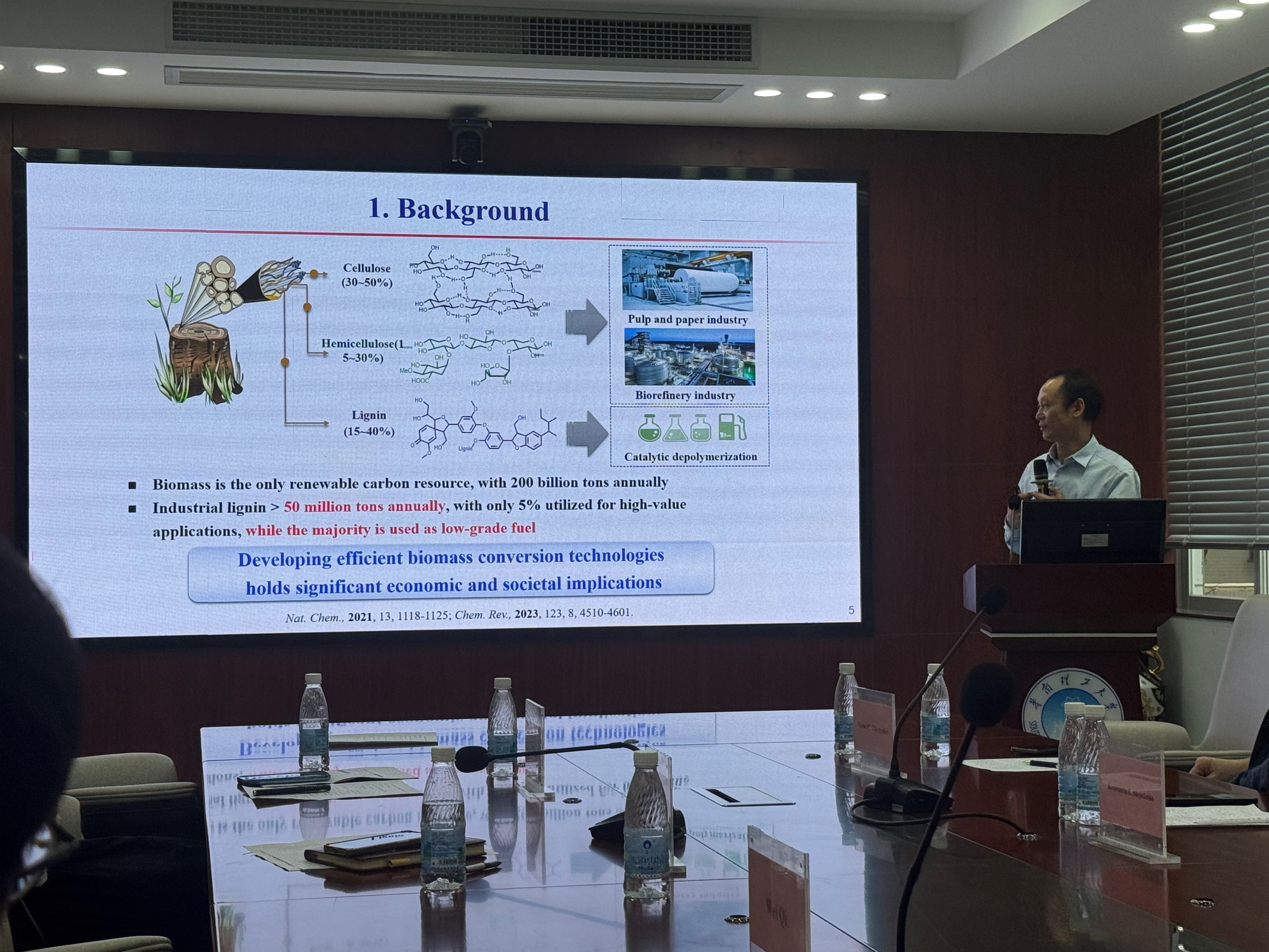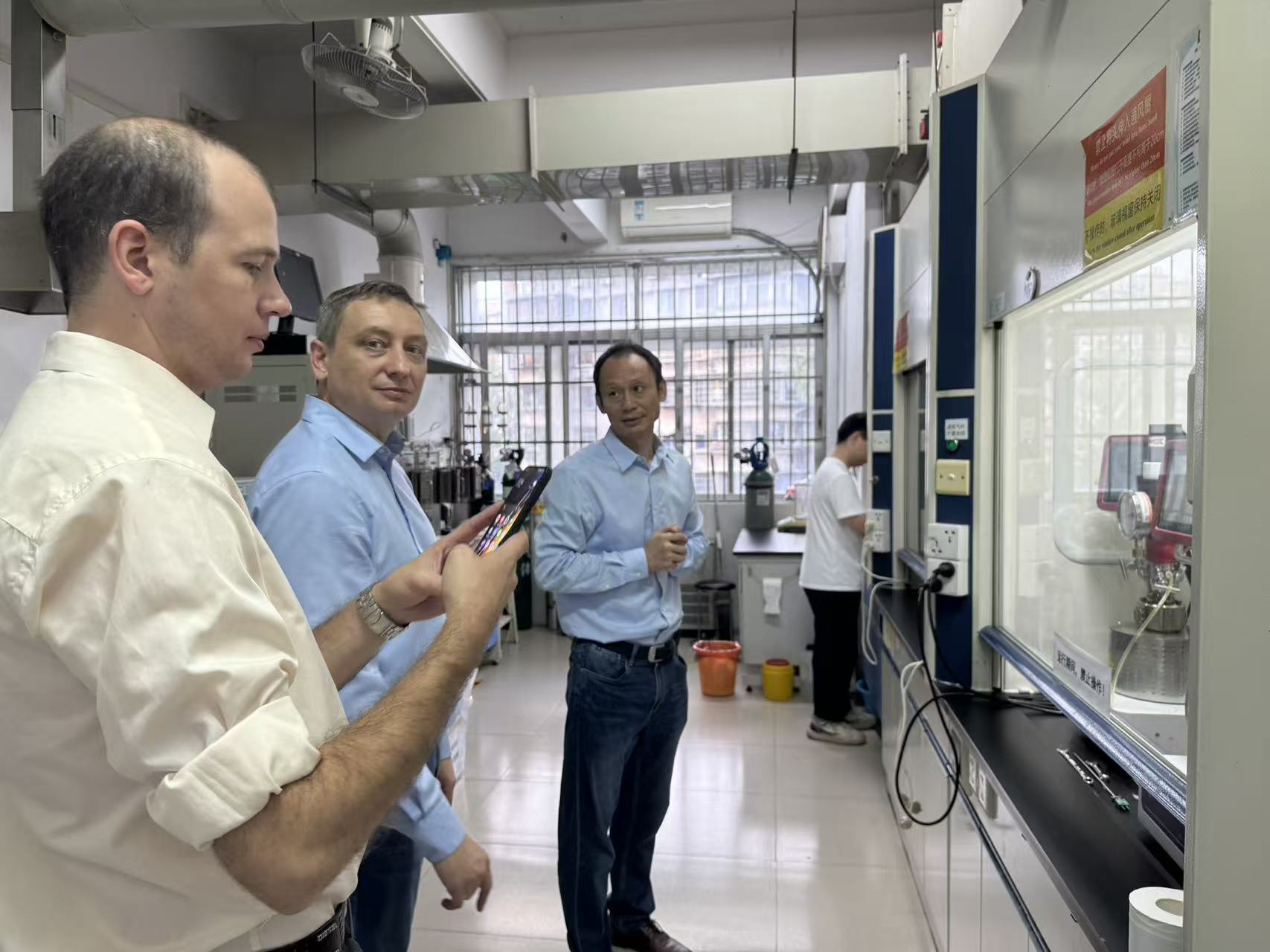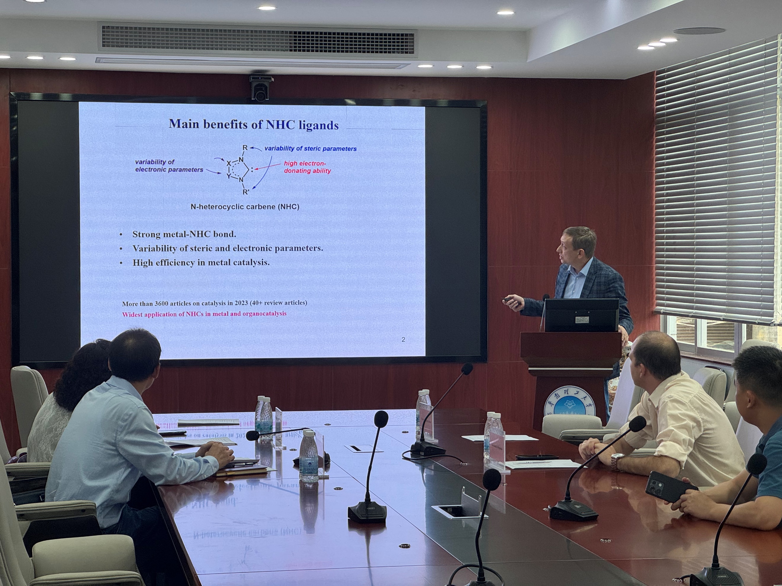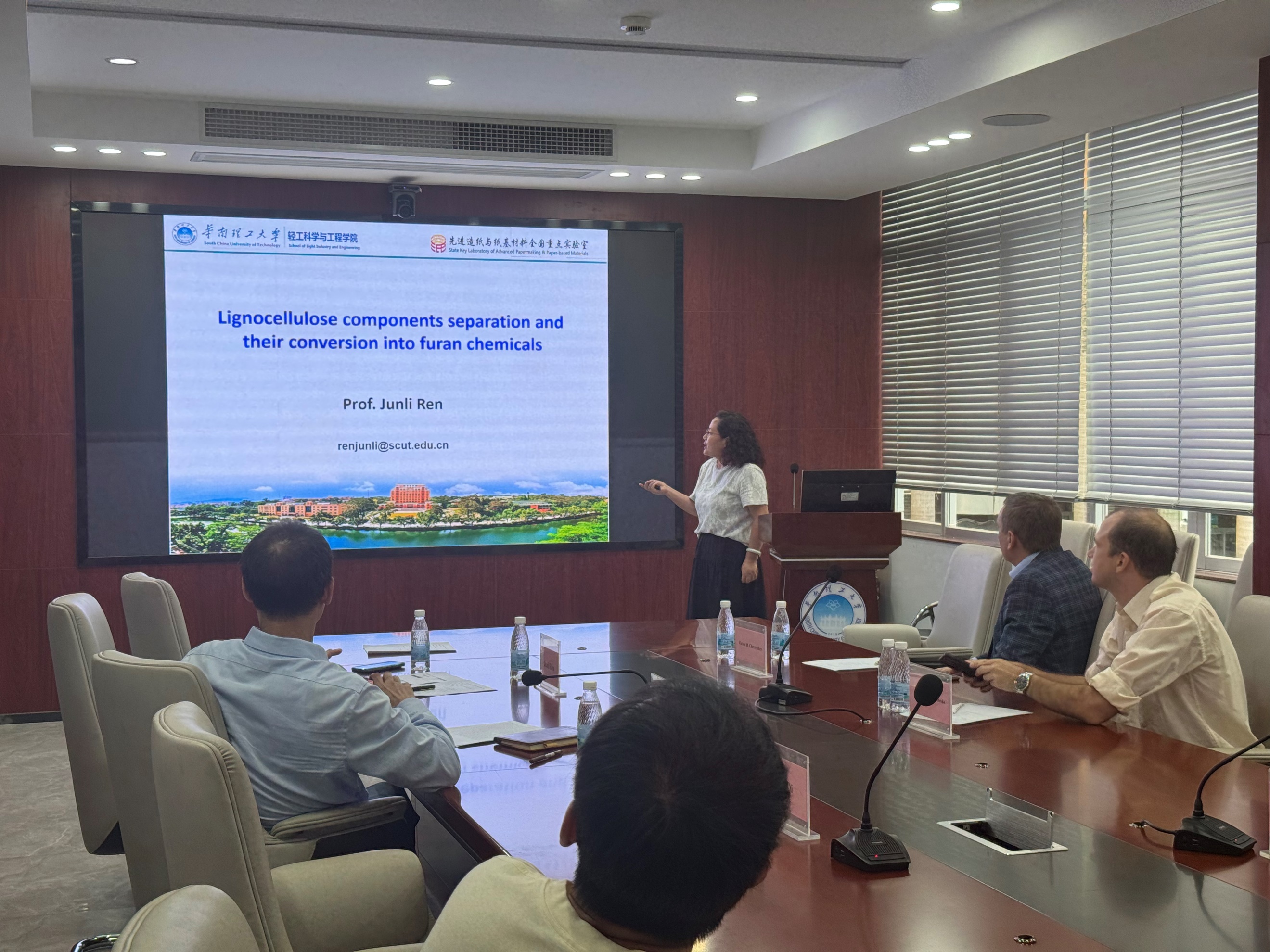 应李雪辉教授的邀请,10月16日下午,斯科尔科沃科学技术研究院Victor Chernyshev教授及Konstantin E. Shepelenko博士一行访问课题组,并在逸夫工程馆105会议室作了题为《Metal/NHC catalysis in fine organic synthesis and functionalization of biomass-derived furan molecules》的学术报告。之后,任俊莉教授和李雪辉教授分别做了题为《Lignocellulose components separation and their conversion into furan chemicals》和《Biomass depolymerization and process intensification》的报告并就国家自然科学基金委国际合作项目的研究进展进行了报告。同时,任俊莉教授和李雪辉教授就项目的深入开展与Victor Chernyshev教授进行了探讨。会后,Victor Chernyshev教授参观了学院分析测试平台和课题组实验室,并围绕生物质转化研究领域的诸多问题进行了深入的讨论。 国家自然科学基金委国际合作项目负责人、中国科学院广州能源所亓伟研究员及张宇博士,也一同参加本次交流及项目进展报告会。