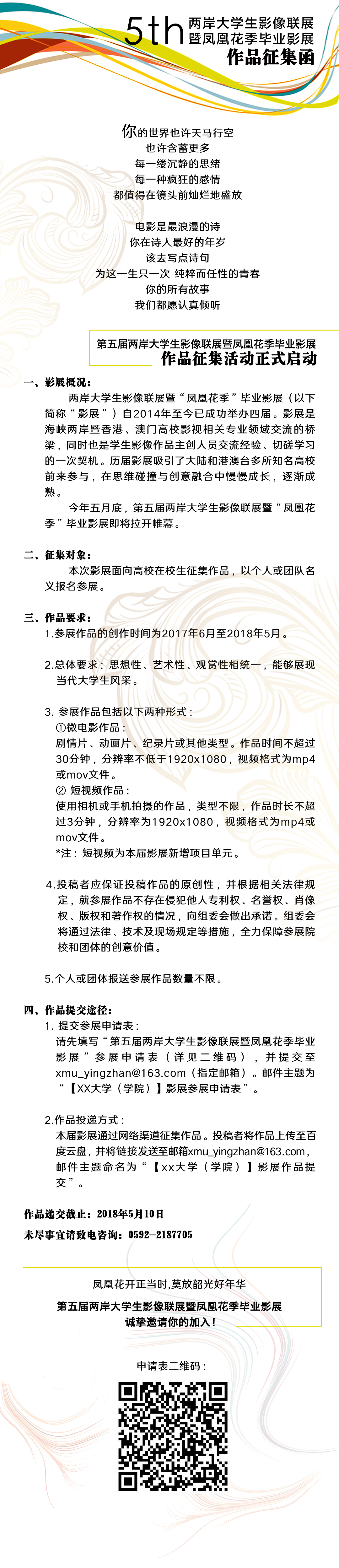 转【厦门大学】“第五届两岸大学生影像联展暨凤凰花季毕业影展”作品征集通知