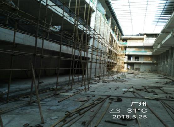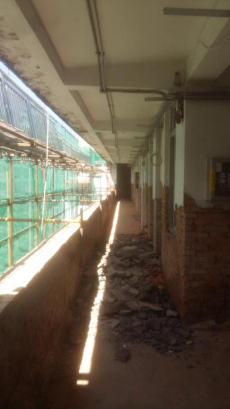 四、西十学生宿舍维修工程项目已开工。宿舍维修工程于2018年5月21日开工。现外排栅已搭设完毕,正在进行楼内拆除项目。