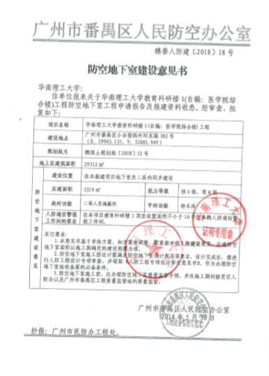 1.医学院综合楼:已取得番禺区国规局医学院综合楼建设工程规划许可证、规划放线测量记录册及人防地下室建设意见、大学城管委会(小谷围街道办)意见咨询复函、卫生防疫意见复函、省的高层建筑超限审查意见;已完成现场放线、现场除草、土壤氡检测等现场工作。正在办理市建委的初步设计审查、消防局的消防审查工作。初步设计已通过专家评审,消防报建已获得部门初步审批意见;正在开展施工图审查、图纸修改与核对工作,着手准备医学院施工前期工作。协助大学城管委会办公室进行校区医学院综合楼相关的供电增容工作。