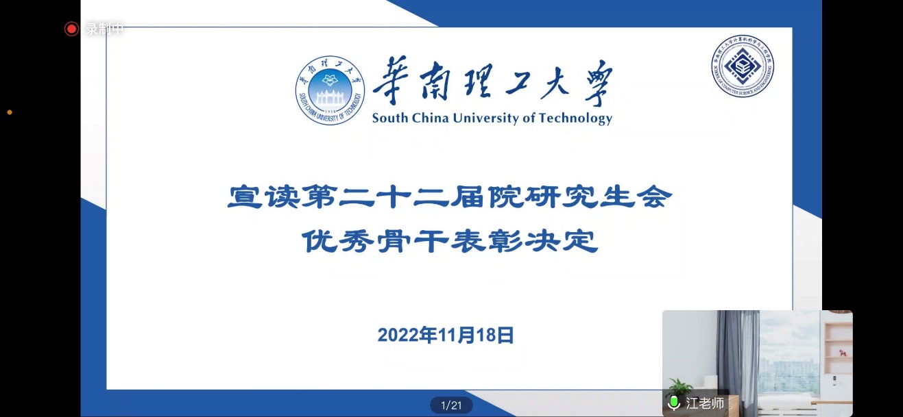 2022年11月18日19:00,华南理工大学计算机科学与工程学院第二十三次研究生代表大会以腾讯会议方式举行。