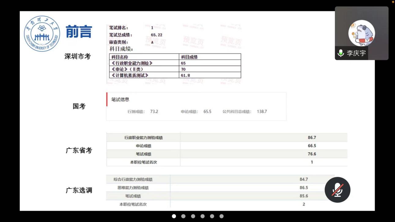 针对目前考公考编人数增多、竞争压力大等问题,为帮助同学们高效备战,提升考公考编技能,2023年4月6日19:00,我院研究生会举办了研途有伴第二期活动-考公考编经验分享会,学院特别邀请了我院2022届硕士毕业生李庆宇担任主讲人,分享考公路上的宝贵经验。本次讲座会以腾讯会议方式进行,会上广大同学认真聆听,积极提问。