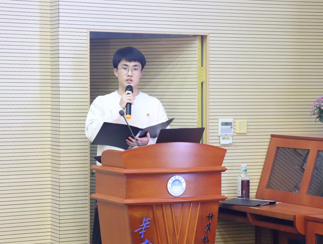 接着,校级青马工程班第十二期学员,来自计算机科学与工程学院21级信息安全班的涂承熙同学也进行了主题演讲。他讲述了自己一步步接触、认识、靠近共产党的人生历程,言辞恳切,令人动容。他的踏实努力、志存高远,值得学员们学习与效仿。
