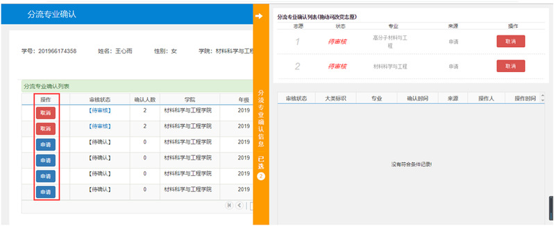 1、登陆路径:新教务系统学生端-信息维护-专业分流确认