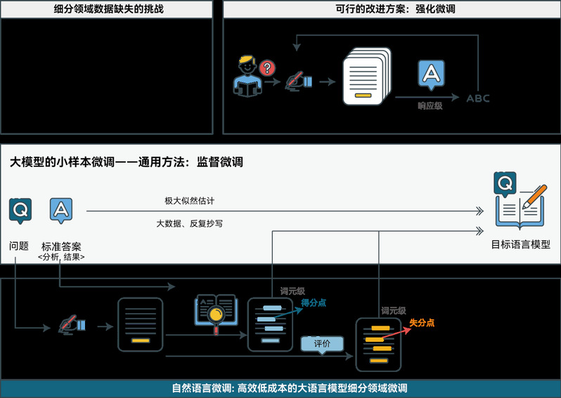 在此情境下,陈敏教授科研团队提出的自然语言微调技术(NLFT)为解决这一问题提供了新的可能。在大语言模型(LLMs)微调领域,现有的模型微调技术主要为监督微调技术(SFT)和强化微调技术(ReFT)。陈敏教授科研团队用类比的方式,把大语言模型比作学生,而大模型微调过程则类似学生的学习过程。