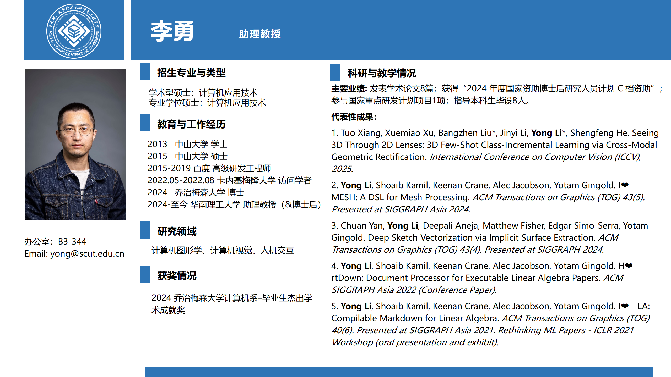 地址:广州番禺大学城外环东路382号,华南理工大学计算机科学与工程学院B3栋 邮政编码:510006 邮箱:x2js@scut.edu.cn