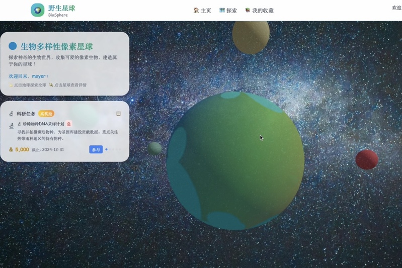 本届赛事汇聚了清华大学、上海交通大学等国内外顶尖高校的46名优秀开发者,竞争激烈。参赛队伍需在48小时内,基于腾讯云CloudStudio、CodeBuddy IDE等前沿AI编程工具进行极限开发。我院代表队——由田田、章予涵、田叶宁三位同学组成的“F1”战队,一路攻坚克难,开发的出《BioSphere(野生星球)》作品。该作品构思新颖,技术扎实,旨在构建一个用户共创、AI驱动的数字绿色经济体。其“通过拍照识别生物、共建虚拟生态星球”的核心创意,获得了评委会“放在全球游戏圈都是超前的想法”的高度评价。