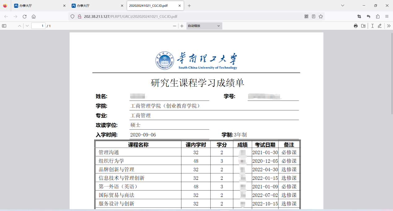 证明材料预览:点击可查看将打印的证明材料,将弹出新页面展示对应内容,可对内容进行确认,如: