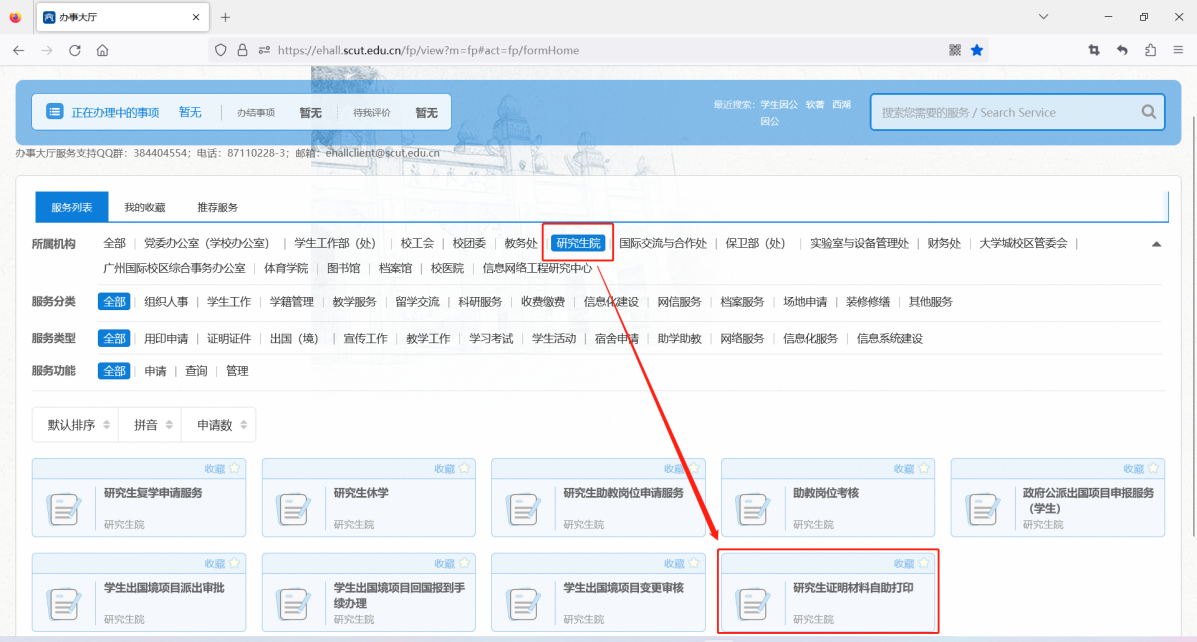 所属机构选择【研究生院】在服务列表可选择对应服务: