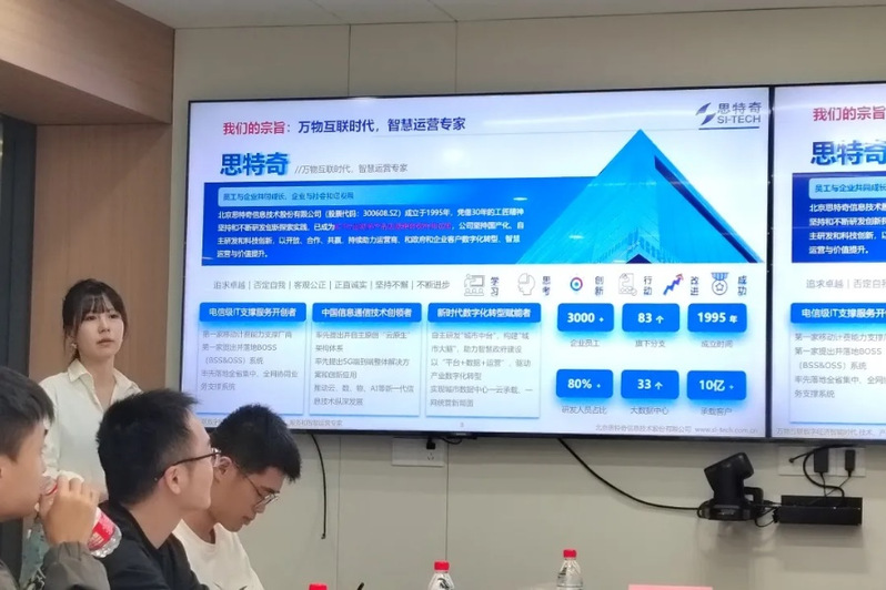 图二 思特奇工作人员介绍公司情况