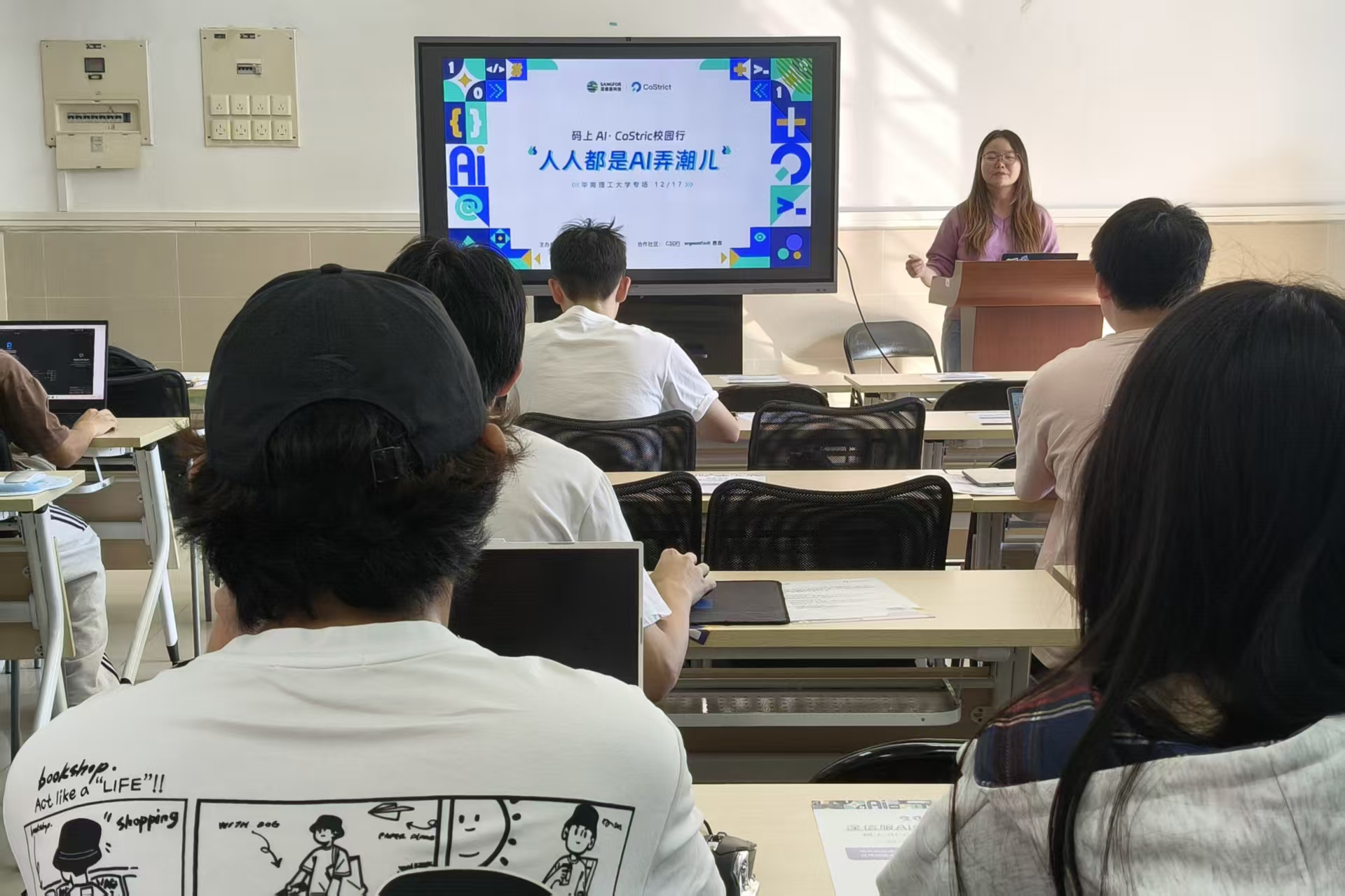 图一 深信服码上AI·CoStrict校园行讲座现场