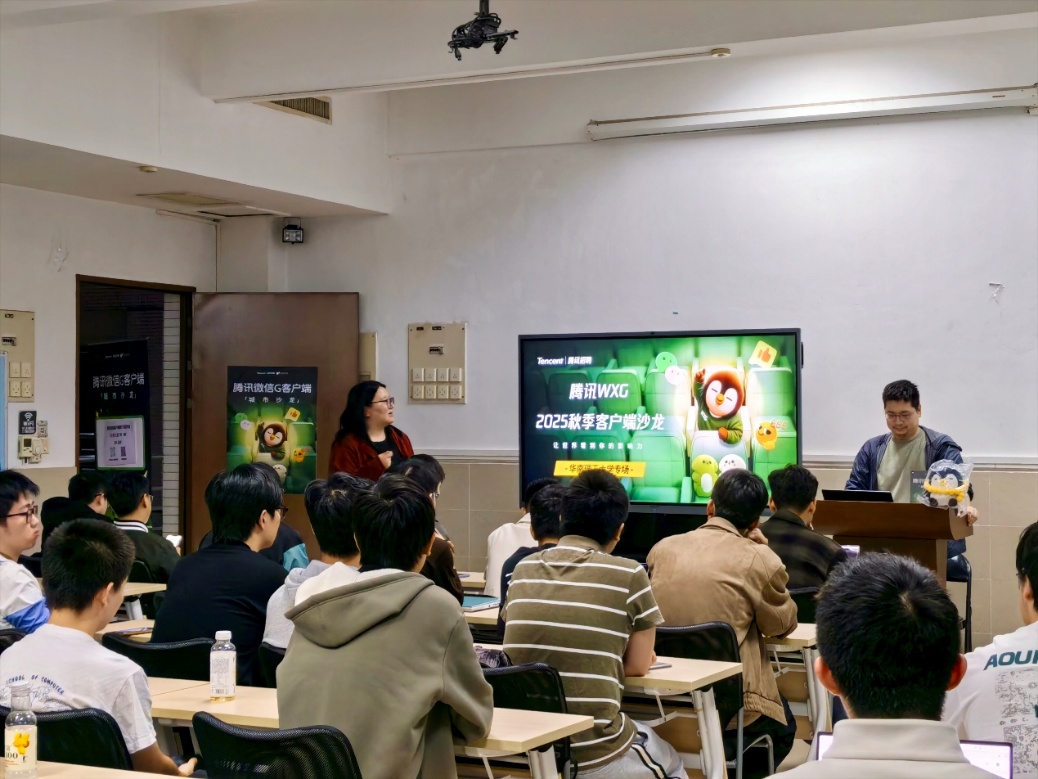 12月5日,周五,腾讯微信客户端城市沙龙在B3-330报告厅成功举办。本次活动面向计算机科学与工程学院的学子,通过核心宣讲、技术分享和答疑互动等环节,帮助学生深入了解微信客户端开发的前沿动态、技术实践与职业发展路径,搭建起校企人才交流的坚实桥梁。