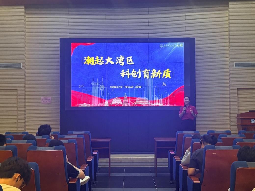 “习语心传”学生党员宣讲团成员郑诗艳以“发展新质生产力:潮起大湾区,科创育新质”为主题作宣讲。宣讲紧扣习近平总书记考察广东重要指示精神,全面展现粤港澳大湾区坚持改革创新、推动高质量发展的生动实践,重点介绍大湾区在芯片、3D打印、智能驾驶、低空经济等领域的科创突破,生动诠释新质生产力的内涵与价值。宣讲紧密结合华工学子专业学习、社会实践、科创竞赛等成长经历,号召同学们立足专业所长,在服务粤港澳大湾区建设中奋力展现新时代青年的责任与担当。
