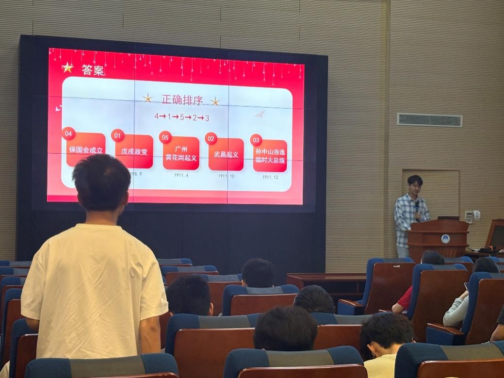活动伊始,计算机科学与工程学院辅导员陈健老师主持开展党史知识竞赛。竞赛围绕党的重大历史事件、英雄模范事迹、红色革命旧址等内容,设置多元互动题型,以沉浸式、互动式学习引领同学们深刻领会党的百年奋斗历程,传承红色基因、赓续红色血脉,持续提升理论素养、厚植家国情怀,推动党史学习教育走深走实、见行见效。