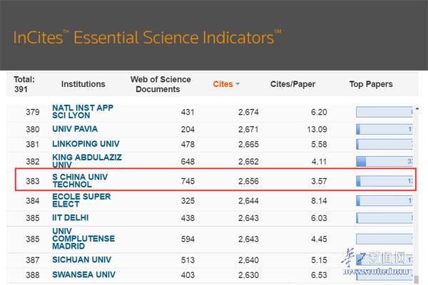 The CS Subject subject Area atof SCUT enters into top 1% in ESI