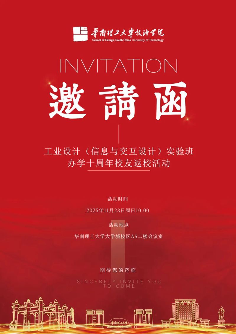 邀请函 | 工业设计(信息与交互设计)实验班办学十周年校友返校活动