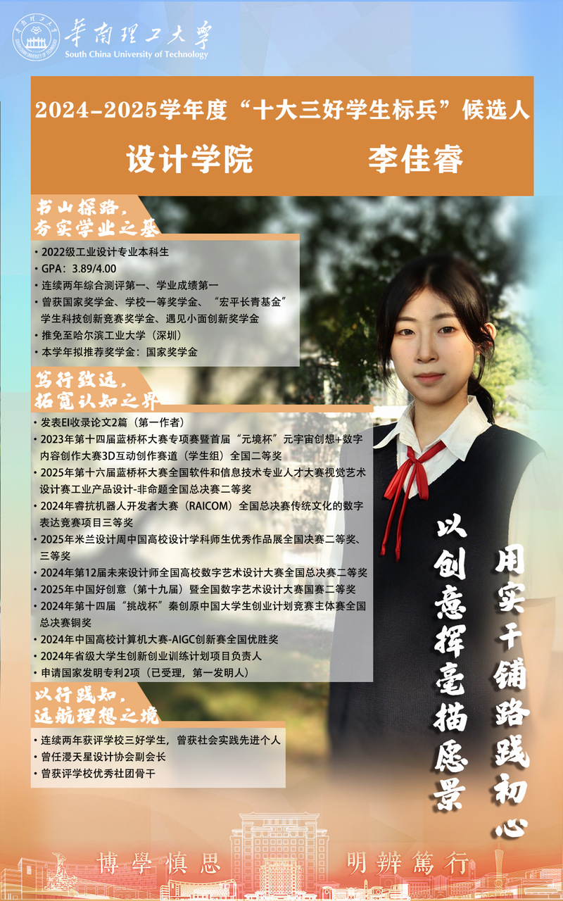 【设计学子】第112期 | 喜报!2022级李佳睿同学获评“十大三好学生标兵”提名奖荣誉称号
