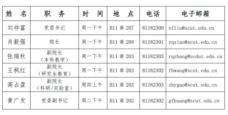 领导班子面对面沟通具体时段安排详见下表(如遇学校、学院重要会议或紧急活动,将优先保障相关工作安排):