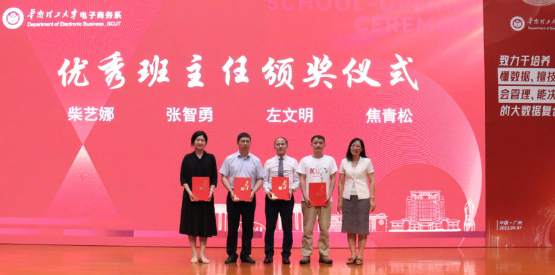 9月7日下午,华南理工大学电子商务系2023级新生开学典礼在大学城校区音乐厅隆重举行。广东省电信规划设计院有限公司副总经理杜劲松先生、天目数据(福建)科技有限公司总经理陈聪校友、数字广东招聘经理刘奕贤女士应邀请参加开学典礼,电子商务系党委书记吴妙娴、院长左文明、副院长杨磊、副书记刘开频以及系全体教师和2023级新生300余人出席了开学典礼。
