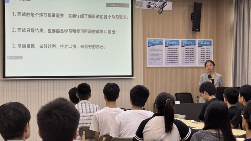 在企业专家培训会上,王秀萍专家首先详细讲解了求职过程中的岗位选择、简历提交、技术面试和综合面试等环节,并与学生们进行了全面的培训和交流。她分享了关于岗位选择、简历优化以及应对面试的方法和技巧,从面试官的角度分析了面试官对求职者能力和特质的重视程度,指导大家如何在众多面试者中脱颖而出。最后,她给出学生几点建议:鼓励同学们寻找兴趣点、从全局到局部洞察业务、培养系统工程思维能力、勇于尝试激发创新等。