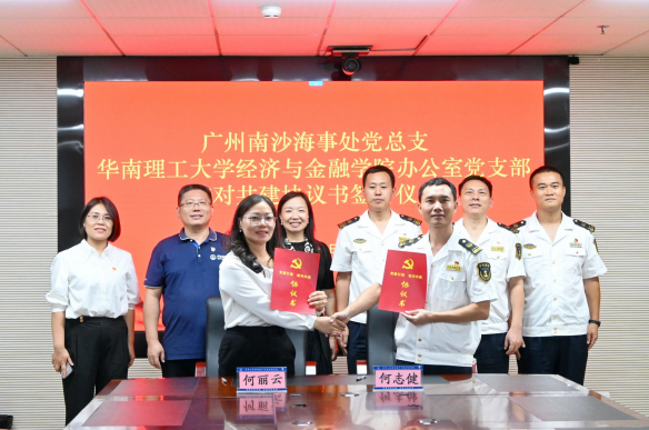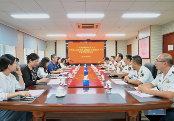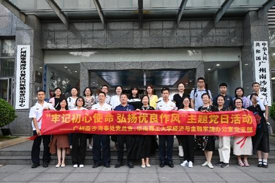 为深入贯彻落实习近平总书记关于开展“不忘初心、牢记使命”主题教育重要指示精神,10月30日下午,华南理工大学经济与金融学院办公室党支部与广州南沙海事处党总支开展合作共建及主题党日活动。学院党委书记黄国清、行政副院长兼办公室党支部书记何丽云、党委副书记牛佳,广州南沙海事处党总支书记兼处长方海波、政委曾志鹏、副处长何志健等20多名党员同志参加了活动。。特邀校工会常务副主席、中小幼党委书记欧阳斌参与。