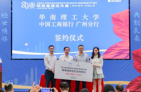 随后,在华南理工大学党委常委、副书记麦均洪和中国工商银行广州分行党委委员、副行长刘文辉的共同见证下,华南理工大学经济与金融学院党委副书记、院长孙坚强与中国工商银行广州分行党委组织部部长、人力资源部总经理杨扬分别代表校银双方进行了签约仪式。中国工商银行广州分行将冠名支持第三届中国研究生金融科技创新大赛在华南理工大学举办,由经济与金融学院承办。