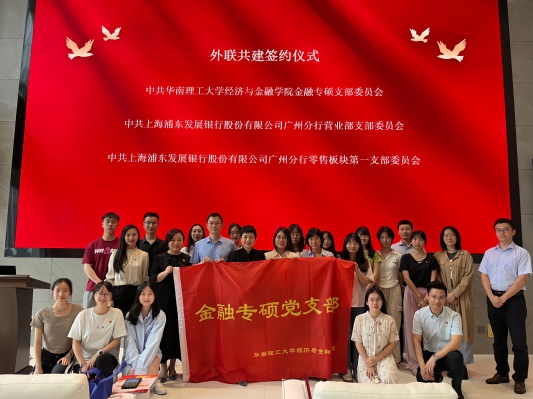 2024年5月17日下午,华南理工大学经济与金融学院党委副书记牛佳和金融专硕党支部书记于孝建副教授带领金融专硕党支部学生党员走进浦发银行广州分行,与浦发银行广州分行营业部党支部、浦发银行广州分行零售板块第一党支部举行党支部共联共建活动。