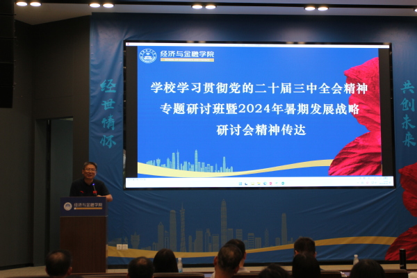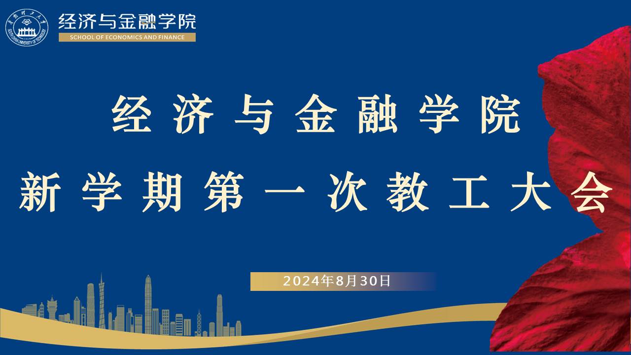 2024年8月30日下午,经济与金融学院在B10学术报告厅召开了新学期全院教职工大会。会议由黄国清书记主持,学院党政领导班子全体成员出席会议,学院全体教职工参加。