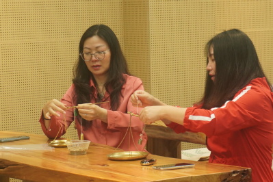 组图3 教师们正在制作香囊