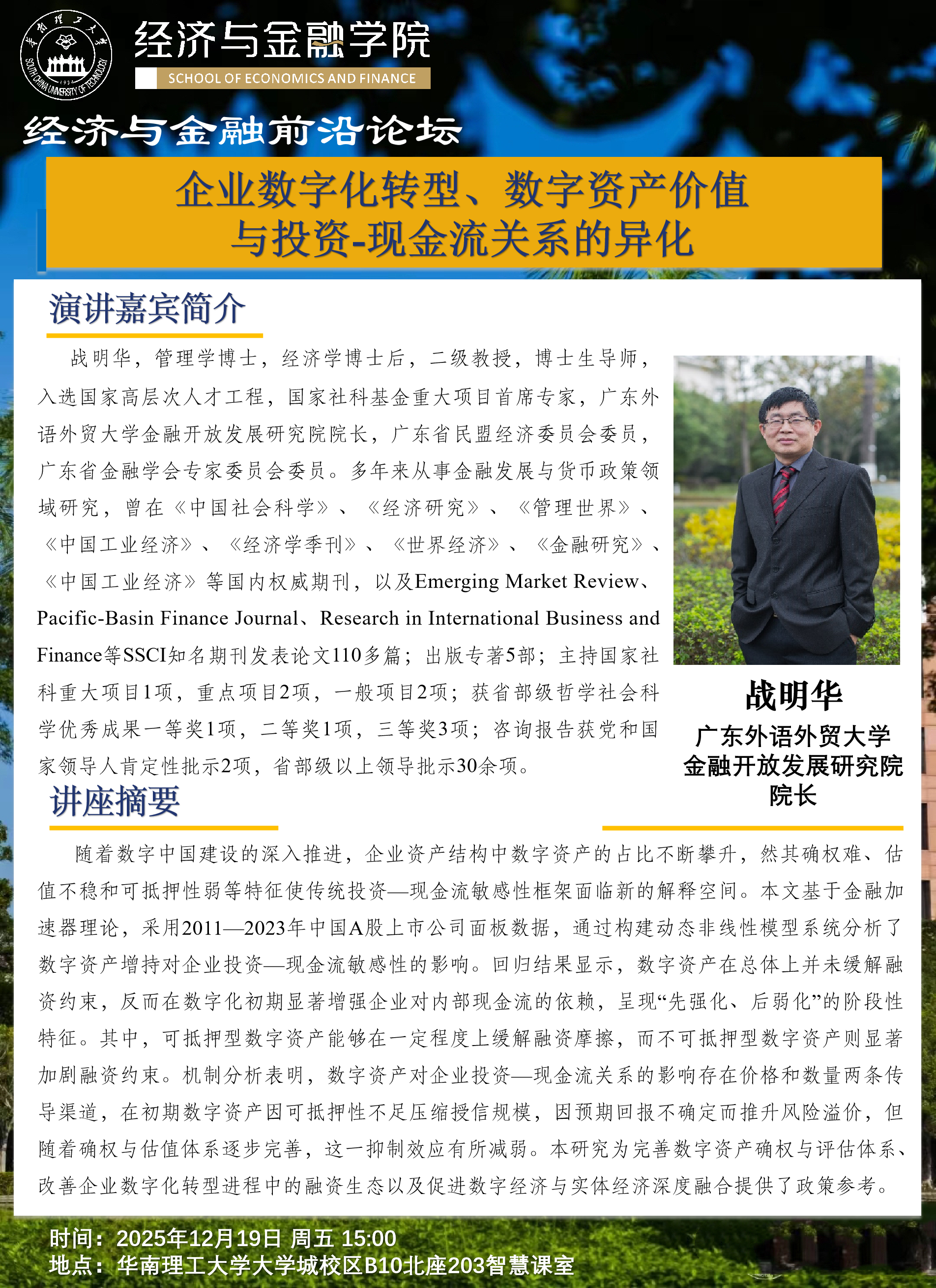 报告人:战明华 广东外语外贸大学金融开放发展研究院院长