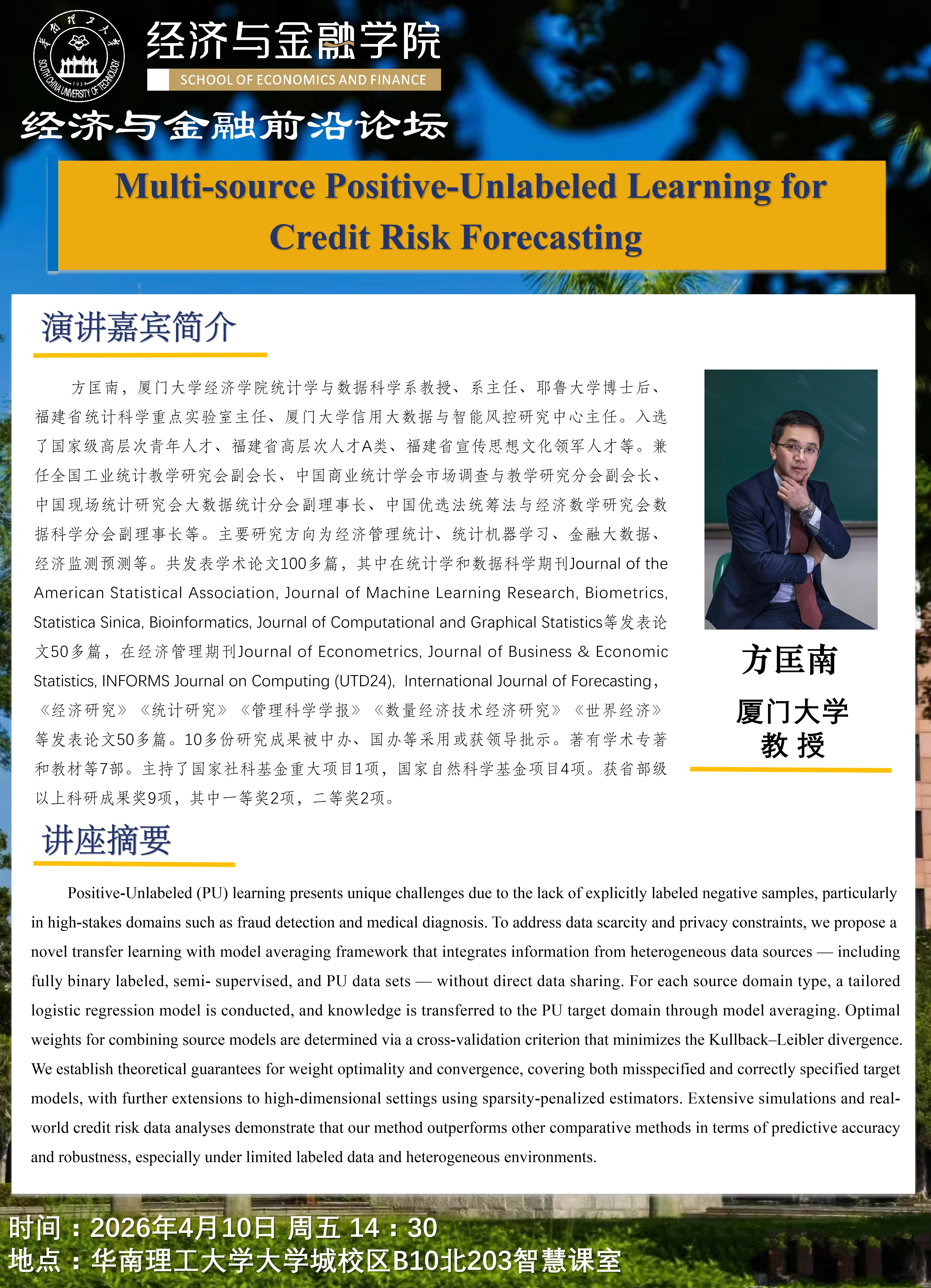 题 目:Multi-source Positive-Unlabeled Learning forCredit Risk Forecasting