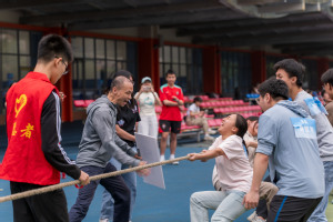 “不倒森林”,宛如一场静谧而充满挑战的修行;“毛毛虫竞速”,则是一场萌趣十足的欢乐之旅;“珠行万里”,是一场对精准配合的极致考验;“凝心聚力”,这个充满力量的名字,诠释着团队合作的真谛;“企鹅漫步”,是一场滑稽与欢乐的盛宴;“魔力飞毯”,则充满了创意与惊喜;拔河比赛是一场力量与意志的较量,更是一场情谊的交融。各参赛队伍积极发扬团结协作精神,全力以赴,运动场上笑声、呐喊声此起彼伏,汇聚成一片欢乐的海洋。