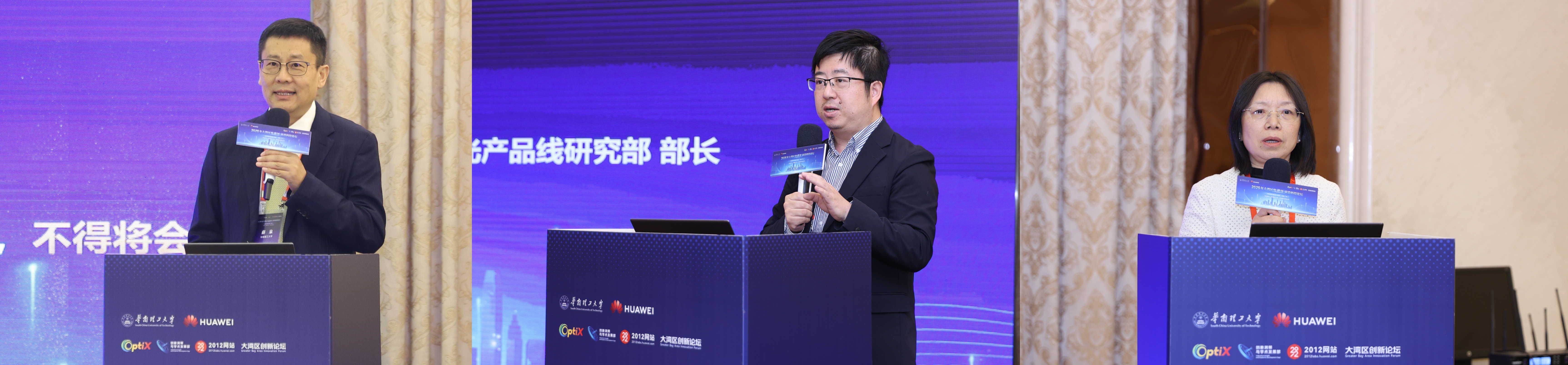 华南理工大学薛泉教授担任大会主席,华南理工大学冯文杰教授、唐锟副教授、曹云飞副教授,华为技术公司贺超博士、李健博士、徐小凯女士等担任论坛程序委员会委员。华南理工大学薛泉教授在大会上致辞,华为技术有限公司光产品线研究部部长冯志勇博士作开场致辞。论坛邀请了英国工程院院士香港城市大学陆贵文院士、华南理工大学Ioannis (Yiannis) Vardaxoglou院士、澳门大学谭锦荣教授、天津大学马凯学教授、东南大学陈继新教授、北京邮电大学李秀萍教授、清华大学陈文华教授、电子科技大学康凯教授、南方科技大学潘权教授、中山大学李云初教授、复旦大学徐鸿涛教授、澳门大学殷俊教授、南通大学陈建新教授、杭州电子科技大学陈世昌教授等知名学者做大会特邀报告。