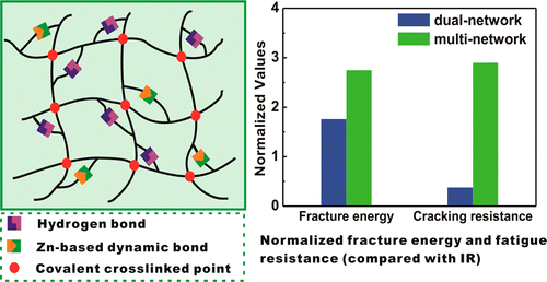 Bioinspired Engineering of Two Different Types of Sacrificial Bonds into Chemically Cross-Linked cis-1,4-Polyisoprene toward a High-Performance Elastomer Jie Liu Abstract: The development of advanced elastomers with a combination of high strength, large extensibility, and excellent flex-cracking resistance is a huge challenge. In this contribution, we proposed a novel strategy to engineer a multinetwork by incorporating weaker sacrificial hydrogen bonds and stronger Zn-based units into a chemically cross-linked cis-1,4-polyisoprene network. The dynamic nature allows the sacrificial bonds to be ruptured and re-formed, resulting in high stretchability. During external loading, the sacrificial bonds rupture prior to fracture of the covalent network, thus dissipating energy efficiently and facilitating chain orientation to produce improved tensile modulus and fracture toughness as well as significant enhancement of flex-cracking resistance. We propose that the enhanced cracking resistance may originate from the energy dissipation and re-forming of sacrificial bonds, a new mechanism alternative to strain-induced crystallization. Overall, this concept provides unique inspiration for the design of advanced elastomers with excellent mechanical properties under both static and dynamic conditions. 文章链接:http://pubs.acs.org/doi/abs/10.1021/acs.macromol.6b01576 |