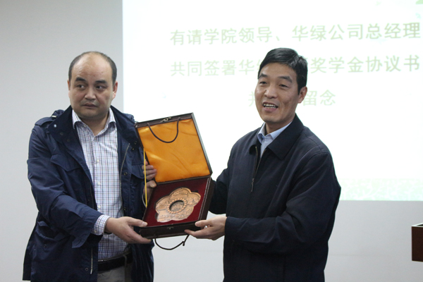 The signing ceremony of Hualu practice and innovation scholarship was held on the spot where an agreement was signed and stamped by General Manager Yang Ding and Secretary Zhang Jiangong respectively. Secretary Zhang Jiangong gave away souvenirs to Guangzhou Hualu environmental protection technology co., LTD.