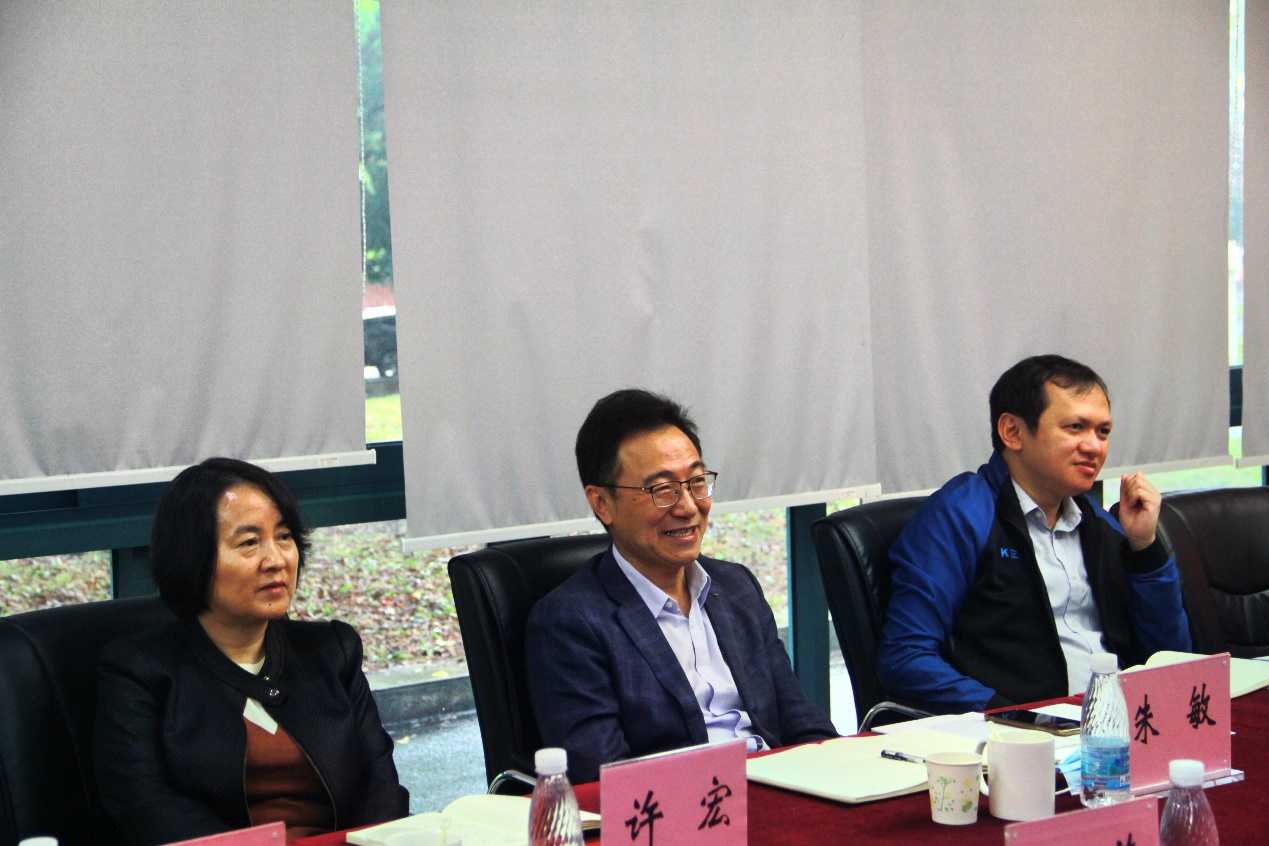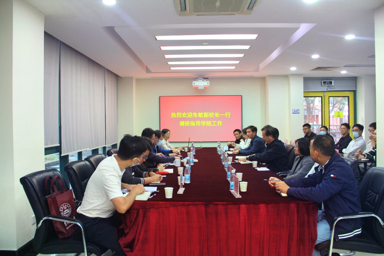 On the morning of November 3, Vice President Zhu Min, Executive Vice Dean of the Institute of Science and Technology Lin Yiwen et al. paid a visit to the School for research and guidance. Dean Ye Daiqi, Party Secretary He Jianhua, Vice Dean Zhu Nengwu, Vice Dean Chen Yan, and full-time Deputy Director of National Engineering Laboratory Qin Yexia attended the meeting, additional eight young professors including Professor Liu Weizhen also attended the research symposium. Dean Ye Daiqi presided over the meeting.