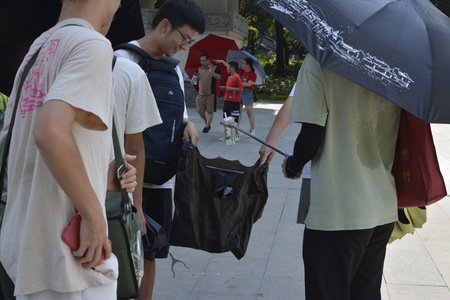 Figure 5 Green Wishes Service Team cleaning up garbage in the scenic area