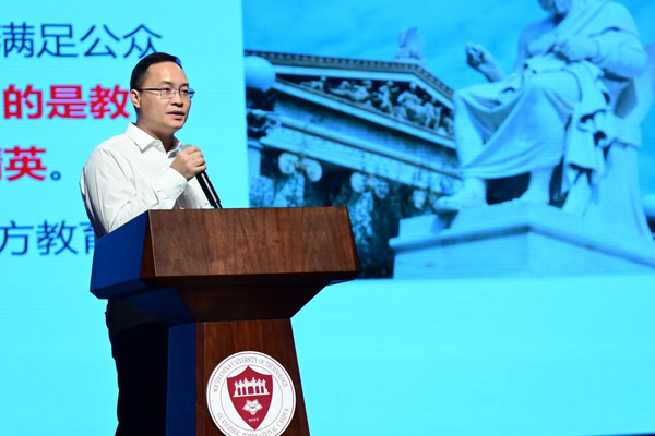 苏秋斌结合校史院史,以“展现青春担当,赓续复兴伟业”为主题讲授课程。苏秋斌从何为大学、华工基因、学生何为三个部分,阐述了大学的起源与发展、大学的使命与青年担当,百年华工的红色基因,电力学子的大学之道,鼓励同学们做好人生规划,践行为党为国的初心,成长为家国情怀和全球视野兼备、学习力、思想力、行动力卓越的“三创型”(创新、创造、创业)人才。他强调,学校从“红色甲工”建校初期到如今办学发展迎来高质量内涵式发展的新局面,是一代代华工人勇立潮头、奋力拼博争取来的。新时代新征程,同学们要增强使命意识,发掘学术志趣,激发创新思维,投身社会实践。最后,苏秋斌与新生共同学习了习近平总书记在中国人民大学考察时的讲话,勉励新生要立鸿鹄志、求真学问,做到知行合一,把家国情怀贯穿求学全过程、融汇在事业追求中。