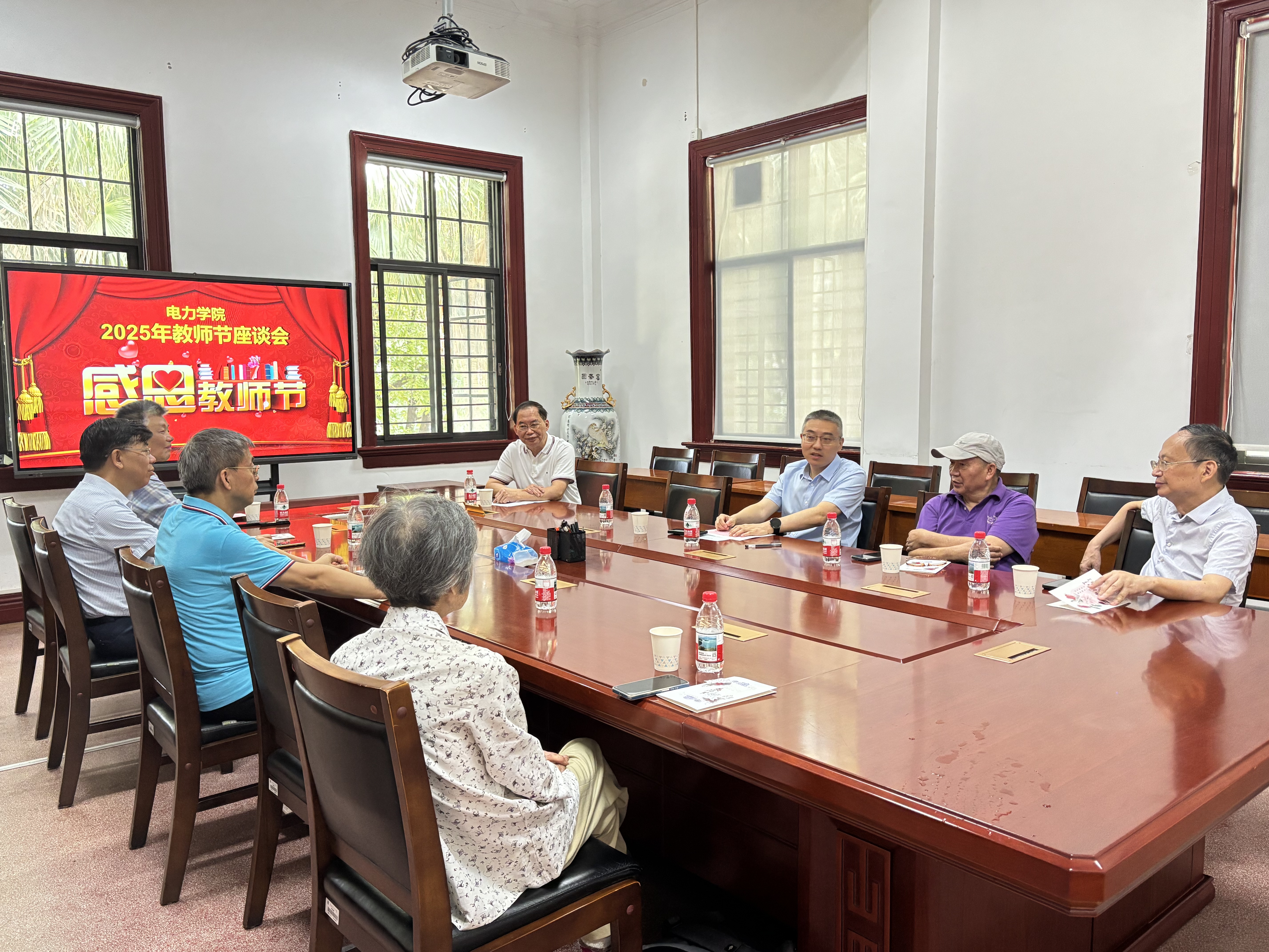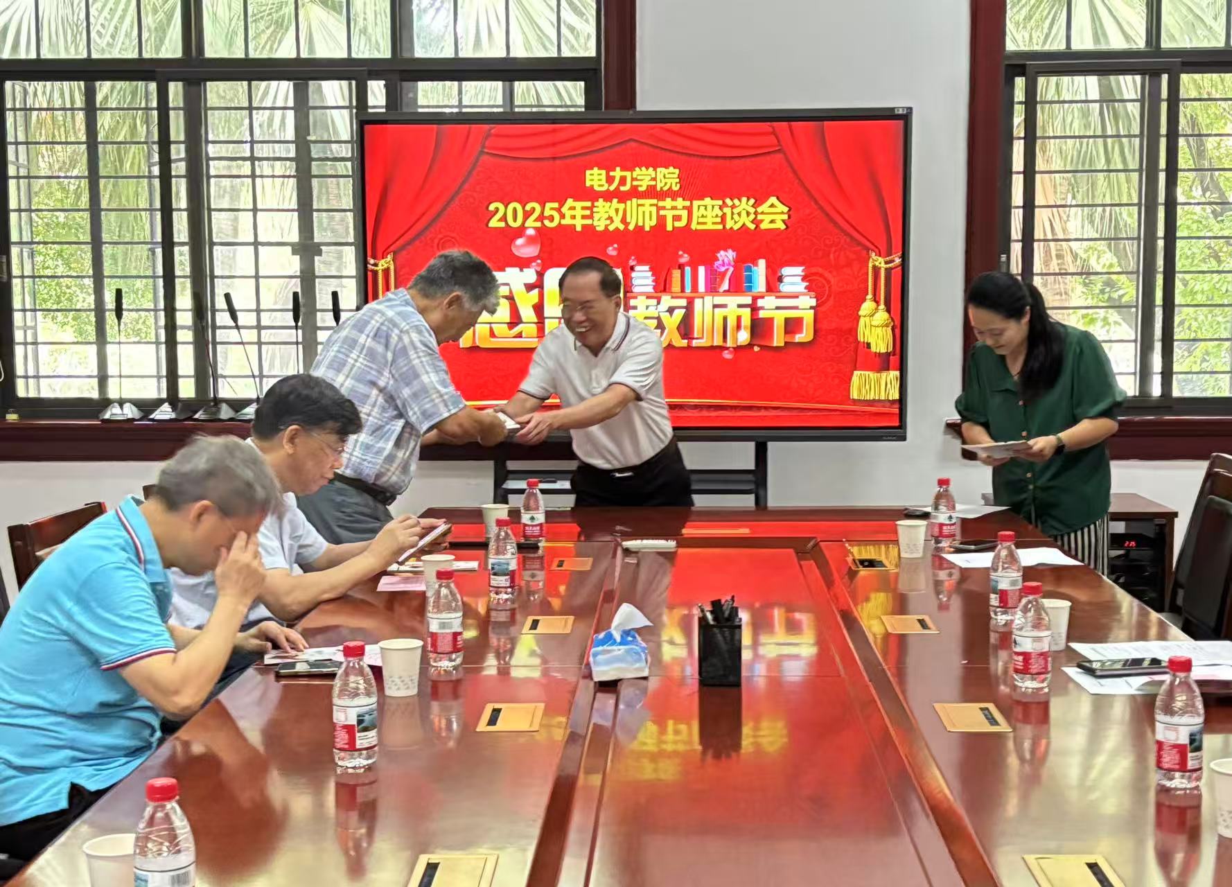 9月10日,在第41个教师节来临之际,电力学院以“师恩如灯,照亮前行”为主题,开展了一系列温馨的教师节慰问活动,向全院教师致以节日祝福与崇高敬意。当日上午,学院党委书记邬智、院长唐文虎与学院部分退休老领导、老教师、高层次人才齐聚一堂,共话学院改革与发展。邬智书记为老师们送上祝福并献上定制祝福卡片,唐文虎院长介绍了学院近年的发展情况,并虚心向老领导求教办学治院的经验,感谢他们为学院发展奠定的坚实基础与无私奉献。89岁高龄的何笑评退休老师动情地表示:“看到学院日新月异的发展,感受到年轻一代的蓬勃朝气,这是教师节最珍贵的礼物。”